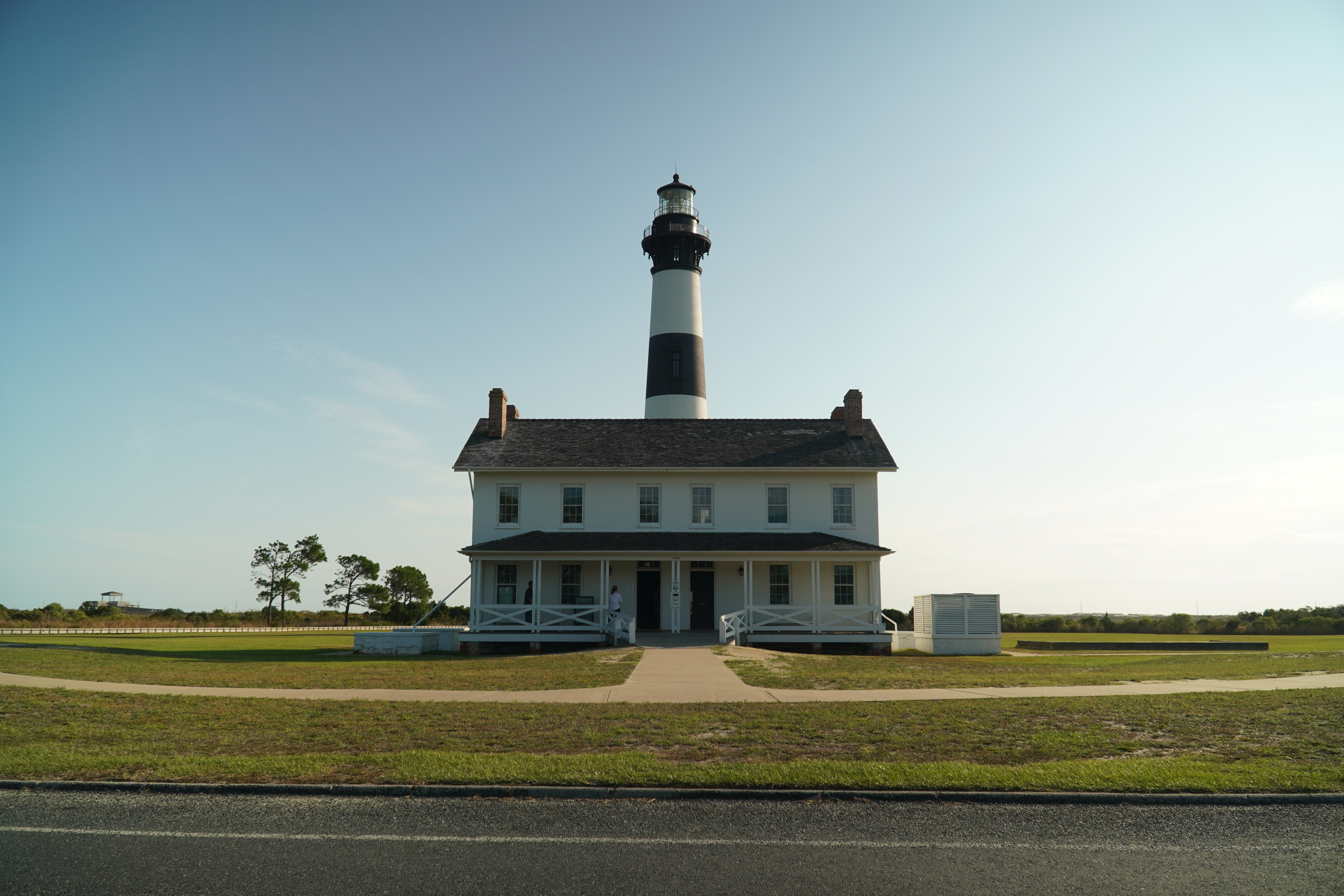 Not far down the Outer Banks, I stopped at Bodie Island lighthouse. Surrounded by pine trees on the way in, it’s actually the third iteration of the lighthouse in this general location. The first one was built on a bad foundation and had to be demolished in 1859. That same year, another was built nearby, but then retreating Confederate forces blew it up in 1861. The current lighthouse was finished and entered service in 1872 and has been keeping a quiet watch over the area ever since.