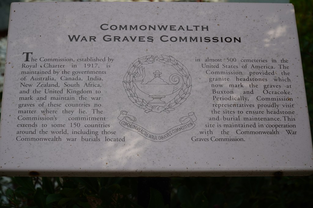 At the beginning of World War II, after the Germans had declared war on the United States, a small group of German U-boats were dispatched to the US eastern coastline to prey on merchant marine ships. At the time, the United States was woefully unprepared to defend against this, and a tiny group of German subs managed to sink nearly 400 merchant vessels. Burning ships off the Outer Banks were so bright, it was said you could read a newspaper at night. One such vessel, a British vessel called the HMT Bedfordshire that was patrolling the coast was torpedoed, ultimately taking the entire crew of 37 sailors with it. In the days following the sinking, four bodies of the crew washed ashore at Ocracoke, and the residents buried them in a local cemetery. Today, there’s a memorial to the ship and its crew, and NPS, the US Navy, and the British Navy hold a ceremony every year to remember the men. Next to the memorial is also a collection of graves that date back to the 1800s, many of which included small poems on the headstones, quiet reminders and epitaphs of those buried there.
