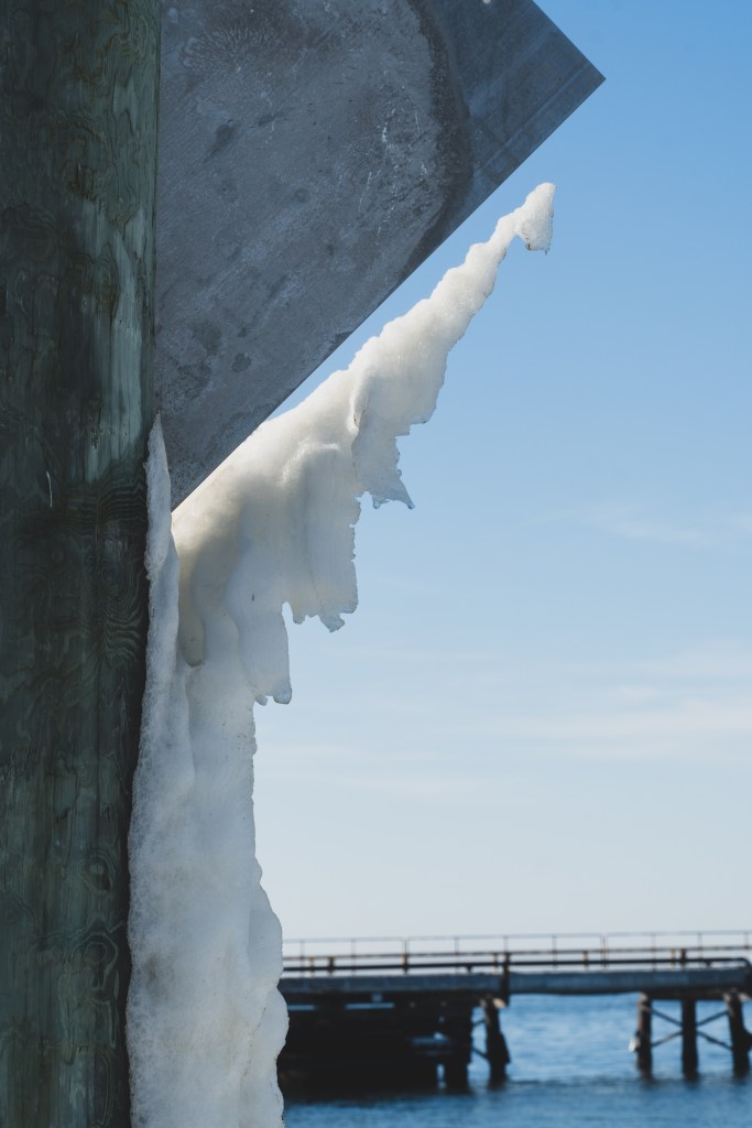 Days prior, the weather had been quite cold, and ice and snow still hung on in the shadiest places. The grasses down by the water had been encased in ice, creating little popsicles with the rugged straw inside at their frozen centers. Ice hung precariously off the signs at the water’s edge, and the sound of the waves gently falling on the rocky beach were only just too quiet to drown out the sound of melting ice dripping onto the thawing ground.