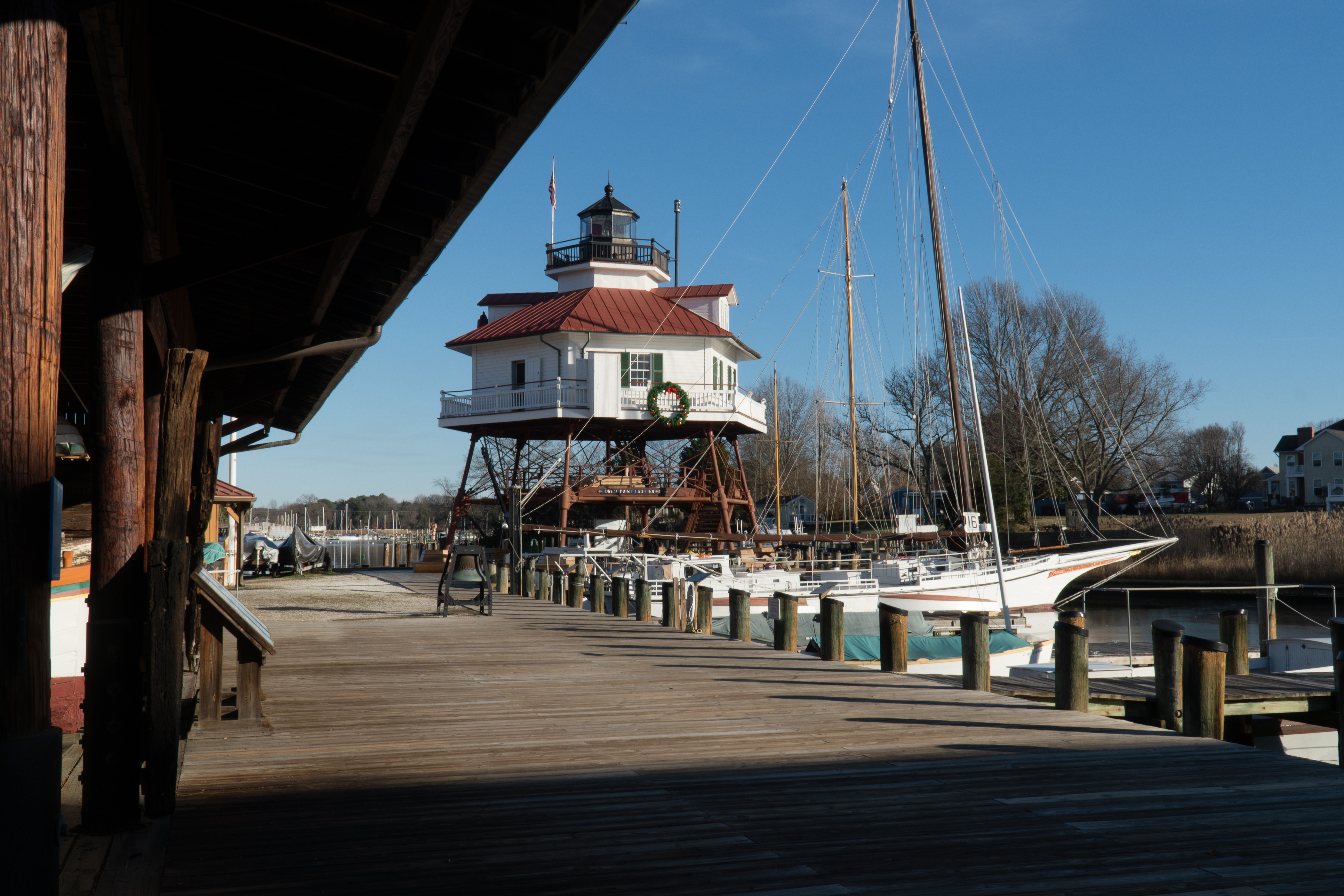 After leaving the frosty tip of the peninsula, it was time to head east to see the next lighthouse, Drum Point. After you tap the location into Google and approach the lighthouse, it strikes you as a very odd place for a signal light to be. While it’s next to a marina and boats, it isn’t directly next to a large body of water, rather it’s up Back Creek, more than a mile away from the actual Drum Point.